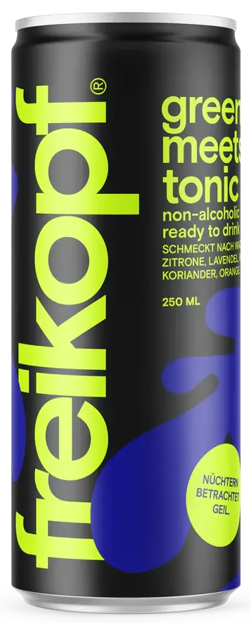 freikopf green meets tonic: fertig gemixt mit Wacholder-Citrus-Kräuter-Geschmack. Super für Unterwegs und dein nächstes Festival. Hier knallt nur der Geschmack rein und dein Kopf bleibt frei, denn dieser Drink ist alkoholfrei. Bist du ready to Drink?